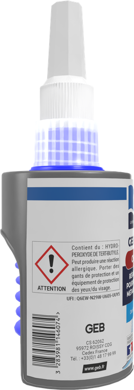 Type de produit : résine anaérobie. Marque : GEB. Contenance : 75 ml.