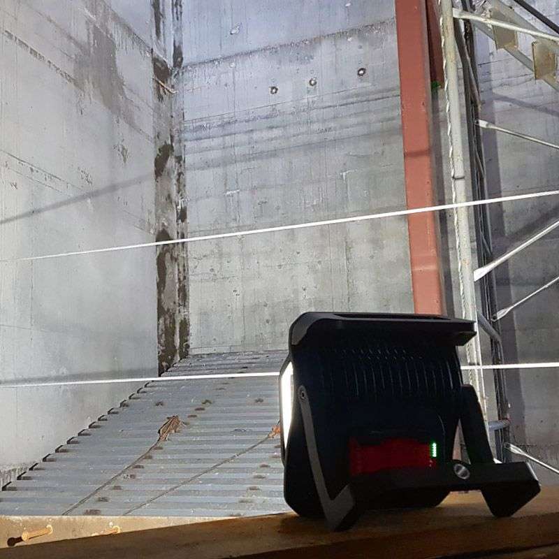 Ce projecteur est idéal pour éclairer entièrement les espaces de travail. L'outil est compatible avec toutes les batteries et tous les chargeurs 18 V de Bosch Professional (Professional 18V System)