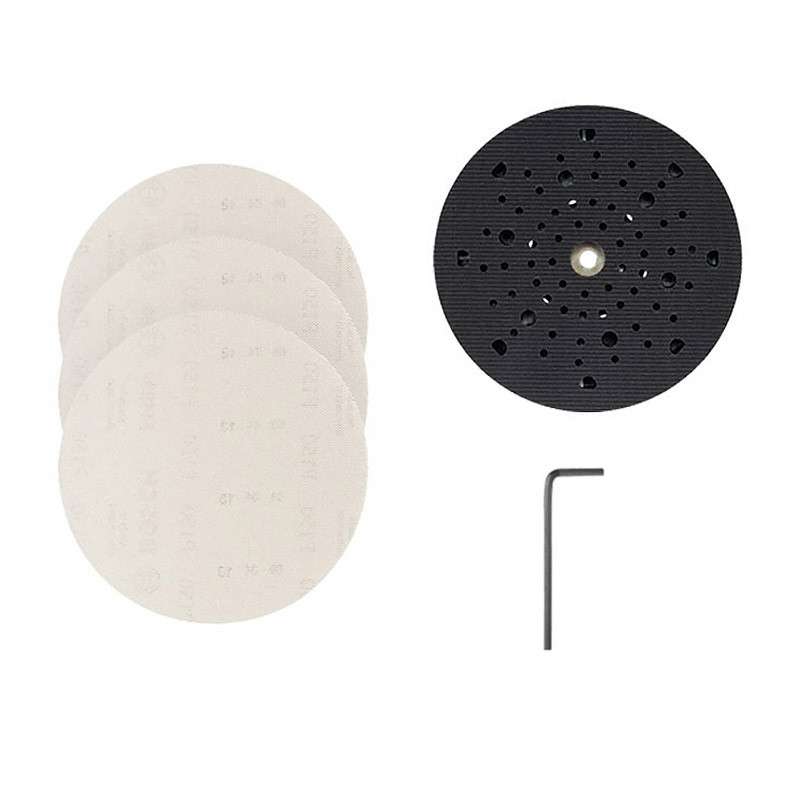 Plateau de ponçage multiperforation très pratique acceptant tous les disques abrasifs, quel que soit leur nombre de trous