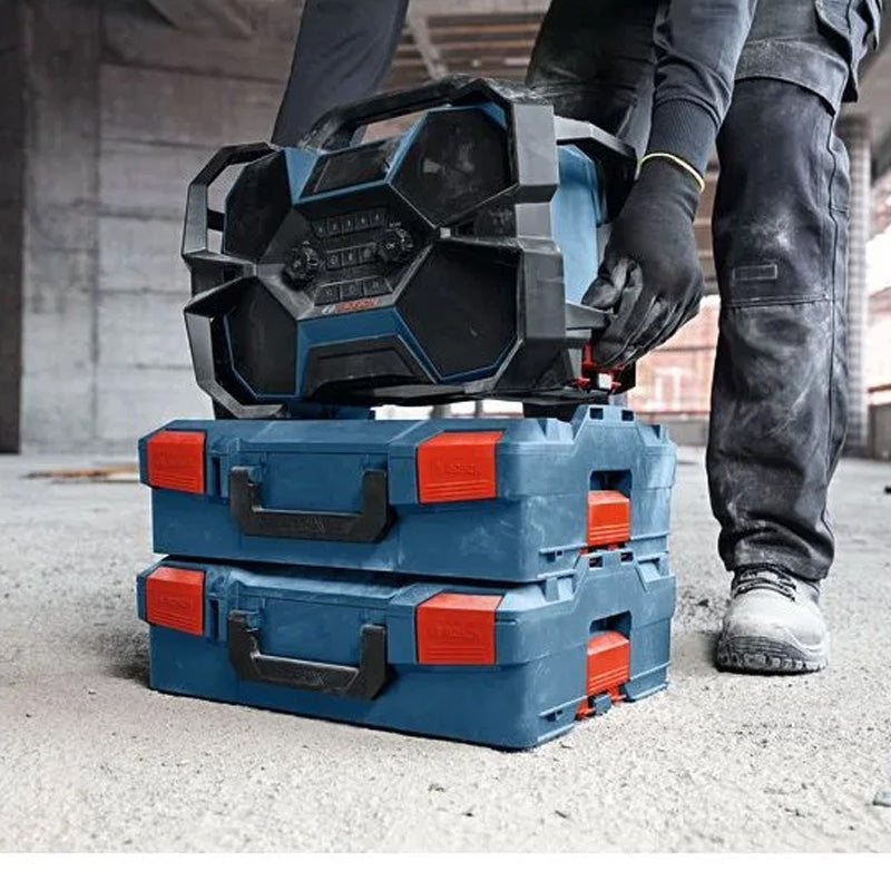 Sa compatibilité L-BOXX facilite son transport sur les chantiers, et sa fonction Multi-Speaker Sound permet de diffuser de la musique sur plusieurs appareils compatibles. Elle est également équipée d'un indicateur de niveau de charge et d'un cadre de protection pour une durabilité accrue, même dans les environnements de travail les plus exigeants.