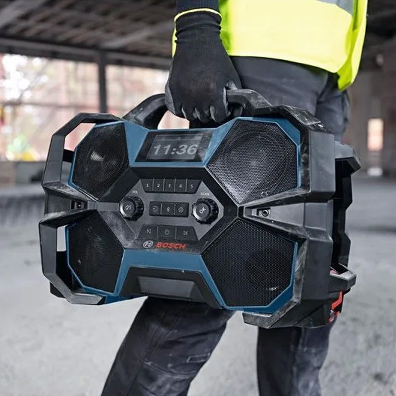 La radio BOSCH GPB 18VH-6 SRC est un outil robuste et performant conçu pour animer votre lieu de travail. Compatible avec les batteries 12V et 18V, elle offre une grande polyvalence, tout en pouvant également être alimentée par secteur.