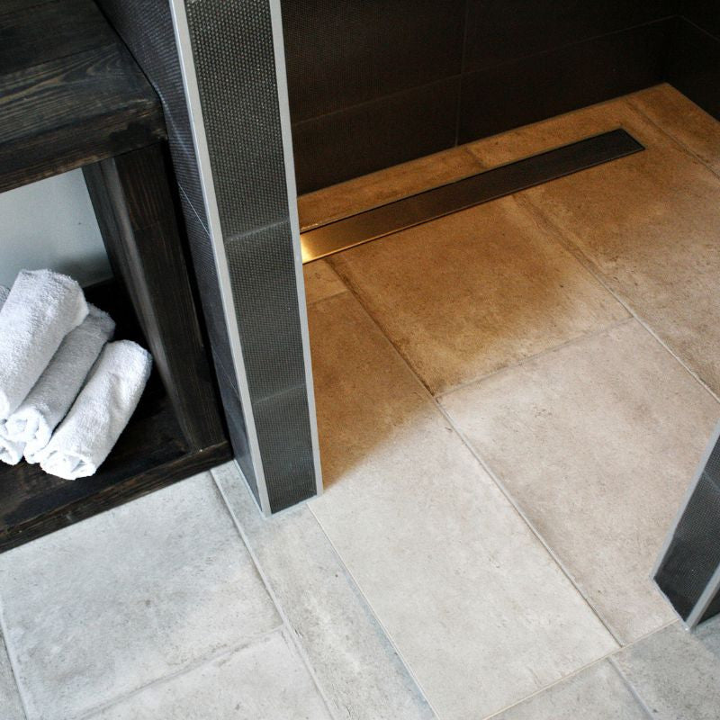 Grâce à ce type d'installation, il est possible de créer une continuité visuelle avec le sol de la salle de bain, ce qui diffère des douches à l'italienne traditionnelle