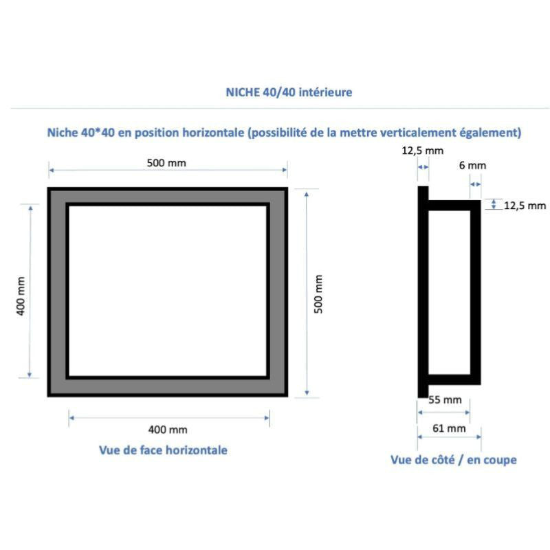 Caractéristiques techniques Duo de niches à carreler étanche MARMOX DUONICHE40/40-INT - Format intérieur 40x40cm - Profondeur 6cm