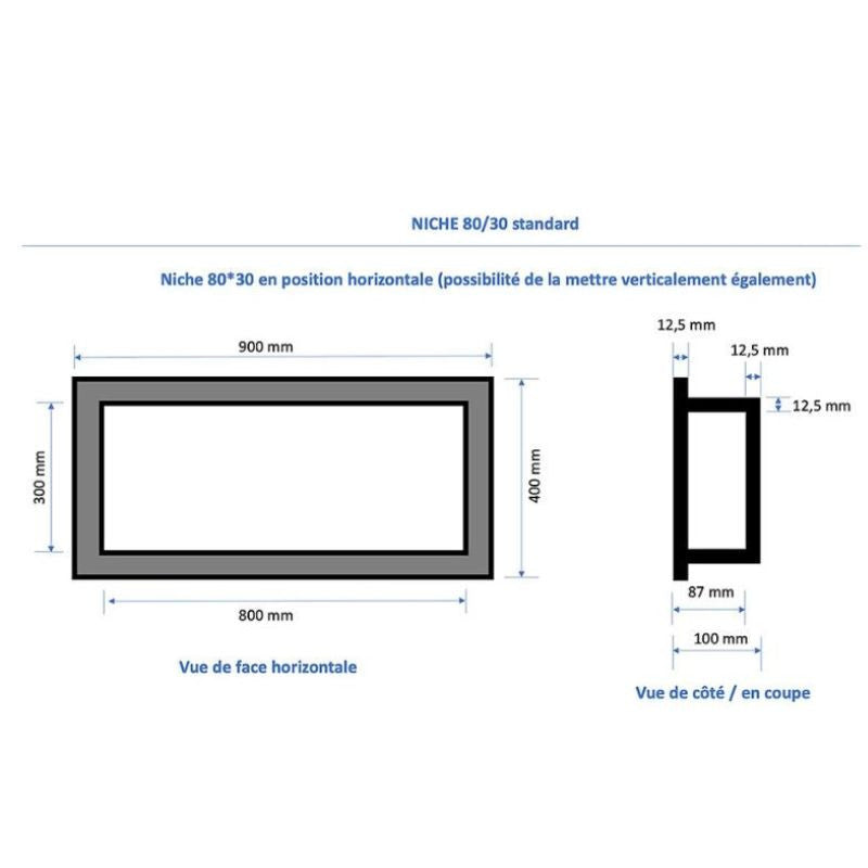 Caractéristiques techniques Duo de niches à carreler étanche MARMOX DUONICHE80/30 - Format intérieur 80x30cm - Profondeur 9cm