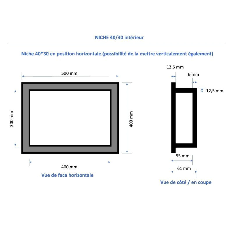 Niche à carreler étanche MARMOX NICHE40/30-INT - Format intérieur 40x30cm - Profondeur 6cm