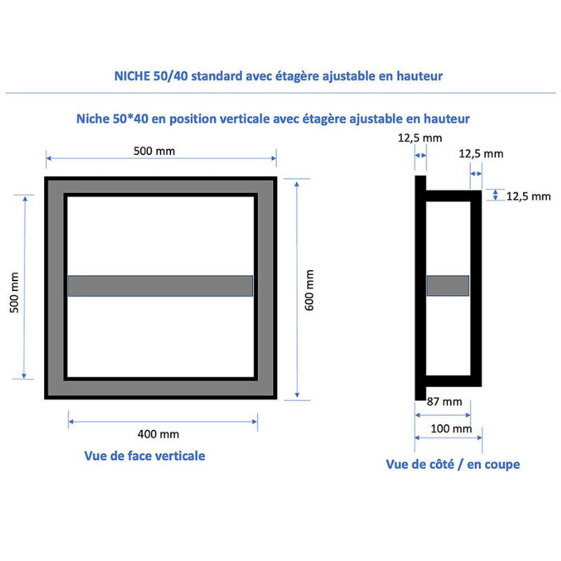Niche à carreler étanche MARMOX NICHE50/40 - Format intérieur 50x40...