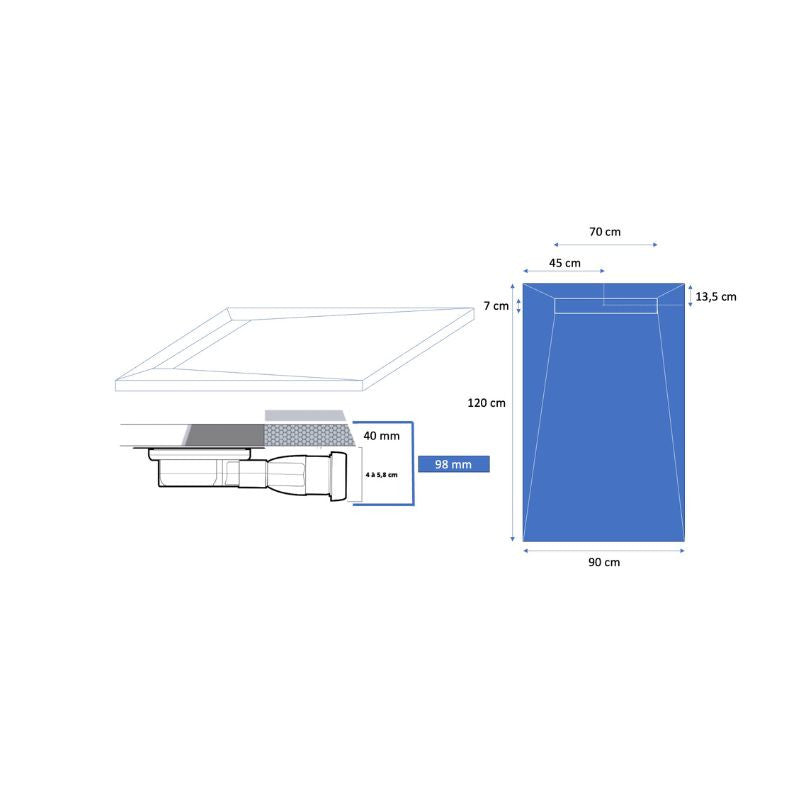 Dimensions du receveur (Lxl) : 120x90cm