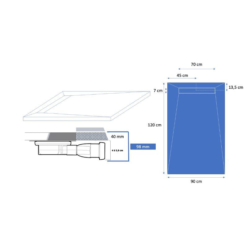 Dimensions du receveur (Lxl) : 120x90cm
