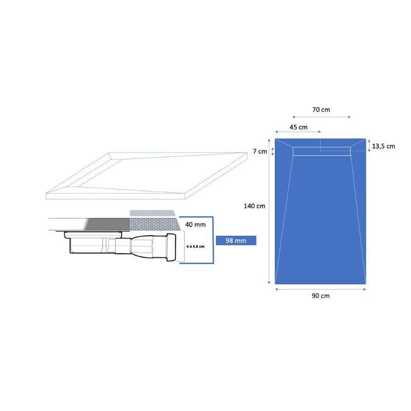 Dimensions du receveur (Lxl) : 140x90cm