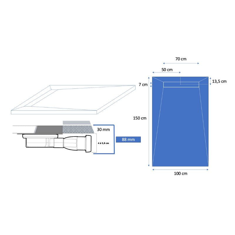Dimensions du receveur (Lxl) : 150x100cm