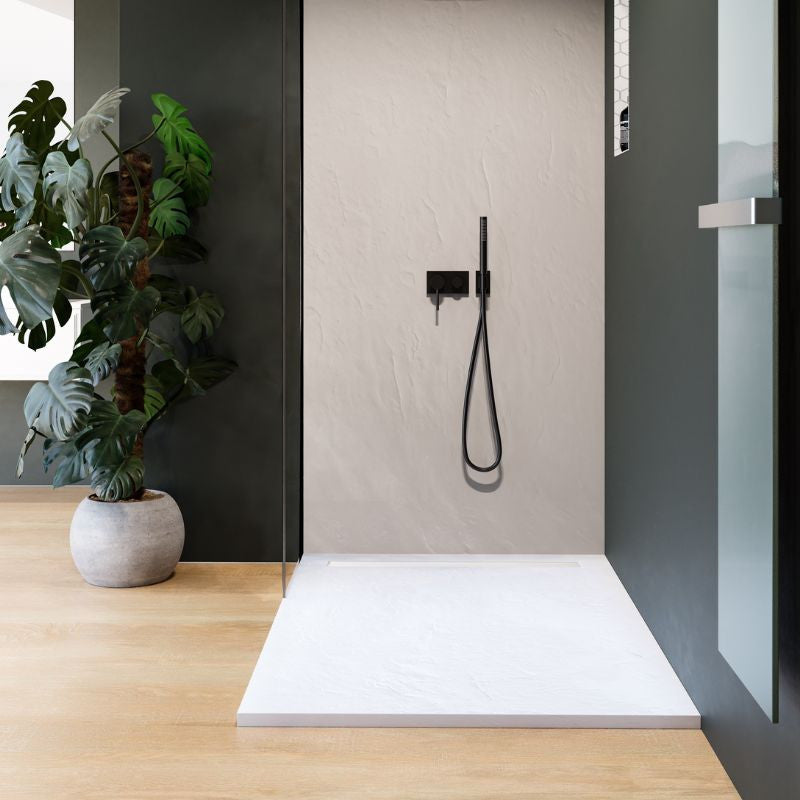 Receveur résine 150x100cm MARMOX RC150100SLATE-9010-LINE - Grille caniveau excentrée - Solid surface - Blanc imitation ardoise
