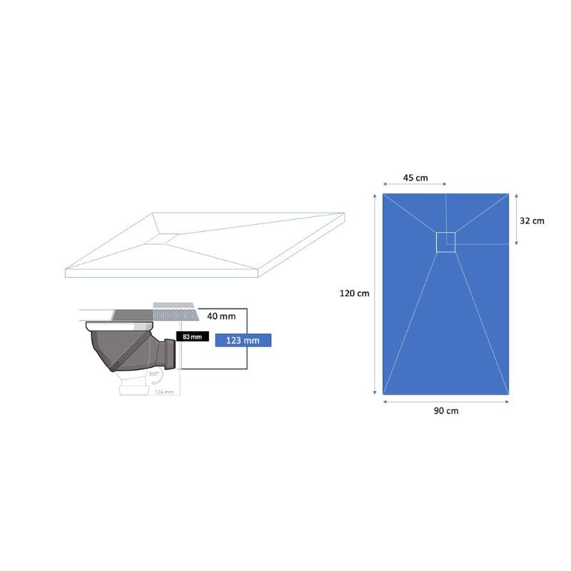 Caractéristiques techniques Receveur résine extra-plat 120x90cm MARMOX RC12090LITE-9010 - Grille acier inox - Blanc imitation ardoise