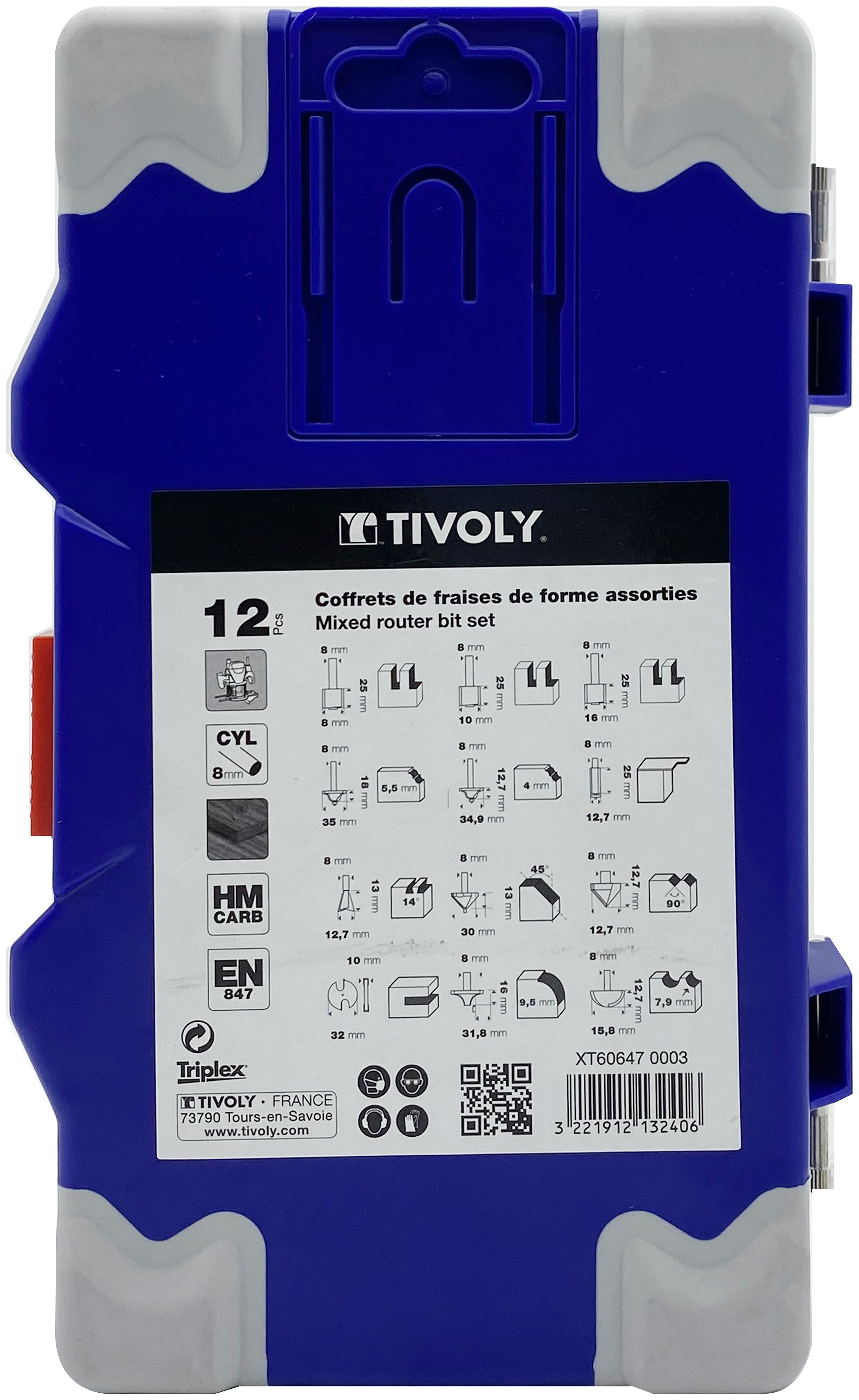 Tivoly 12 fraises de défonceuse de formes assorties - Queue 8mm