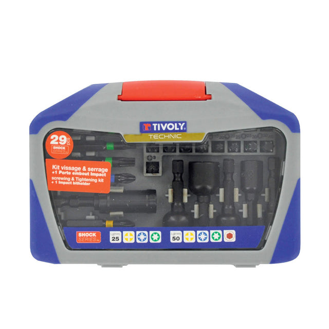 Tivoly 29 pièces- 23 embouts torsion impact + 5 noix de serrage Ø 6 à 13mm+ 1 pote-embout impact à puissant aimant circulaire -SHOCK SERIES
