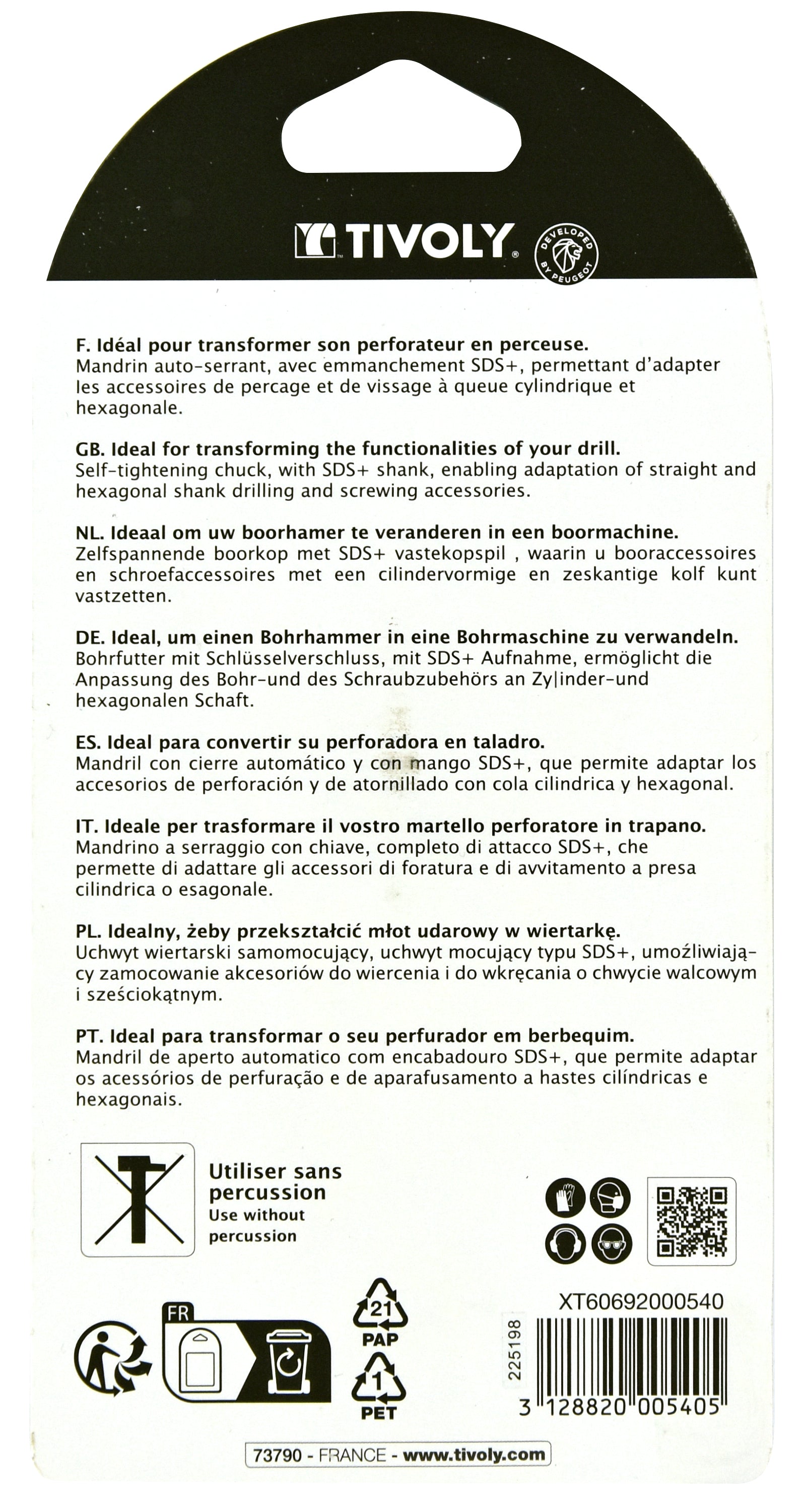 Tivoly Mandrin auto-serrant SDS+ Ø 2 à 13mm