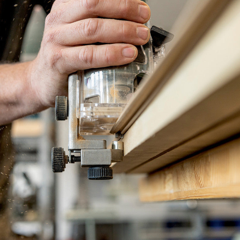 Doté d’un système de réglage en continu et précis de la profondeur à l'aide d'un cric à crémaillère, l'utilisateur peut régler facilement la profondeur de fraisage et l'adapter à ses besoins. Permet ainsi de réaliser des rainures, des feuillures et des affleurements avec une grande précision et une finition impeccable.