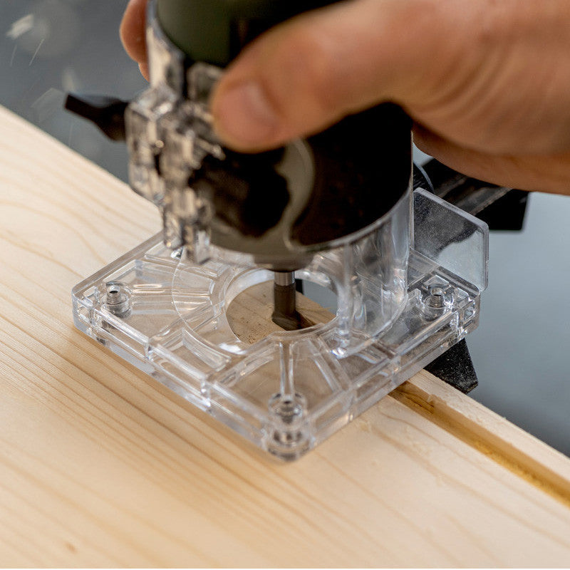 Dotée d’un socle transparent qui donne un maximum de visibilité sur la fraise et la pièce à usiner.