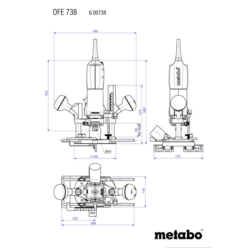Caractéristiques techniques Défonceuse METABO 8mm filaire 710W OFE 738