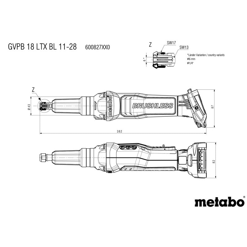 Caractéristiques techniques Meuleuse droite sans fil 18V GVPB 18 LTX BL 11-28 - Pick+Mix (sans batterie ni chargeur)