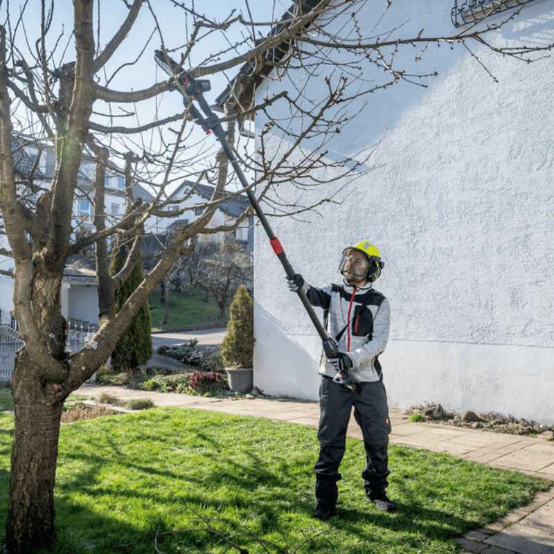 Cette scie élagueuse Metabo est idéale pour un usage polyvalent et sécurisé en élagage. Pour atteindre les branches en hauteur, elle peut être combinée avec la barre télescopique MS disponible séparément. Elle est compatible avec toutes les batteries et chargeurs 18V du système CAS multi-marques.
