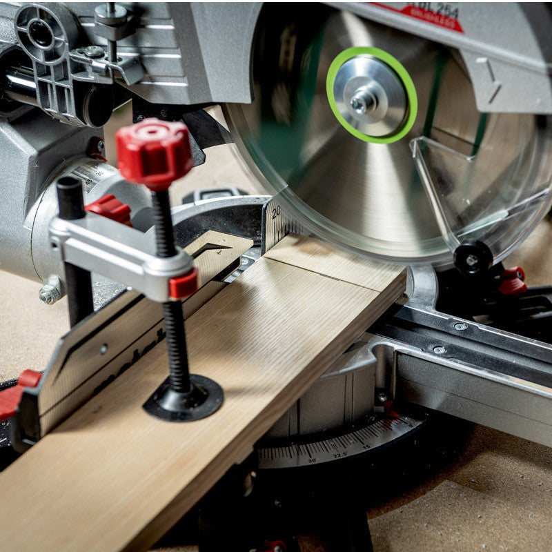 Scie à onglets et radiale sans fil compacte de la classe mobile M à structure robuste en fonte d'aluminium moulée sous pression pour les exigences les plus élevées.