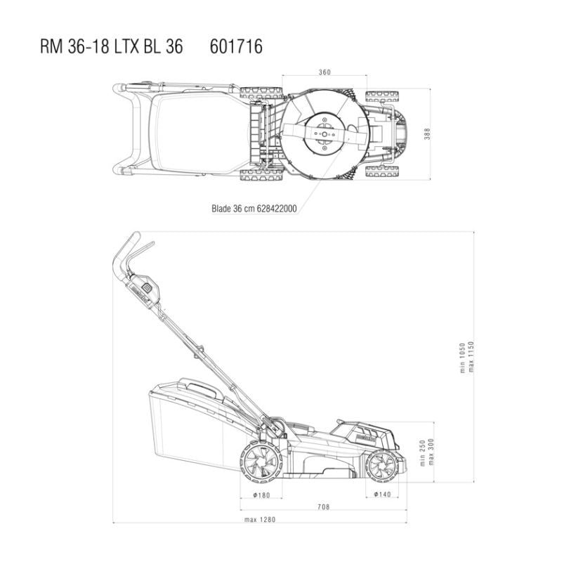 Caractéristiques techniques Tondeuse sans fil METABO RM 36-18 LTX BL 36 - 18V - Machine nue