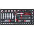 Il s’intègre parfaitement dans les servantes et établis, offrant un accès rapide et une excellente visibilité des outils grâce à une empreinte découpée au laser. Ce coffret inclut un cliquet ULTIMATE 3/8", une large gamme de douilles standards, longues, bougies, XZN®, TORX®, 6 pans, ainsi que des rallonges, cardan et poignée coulissante.