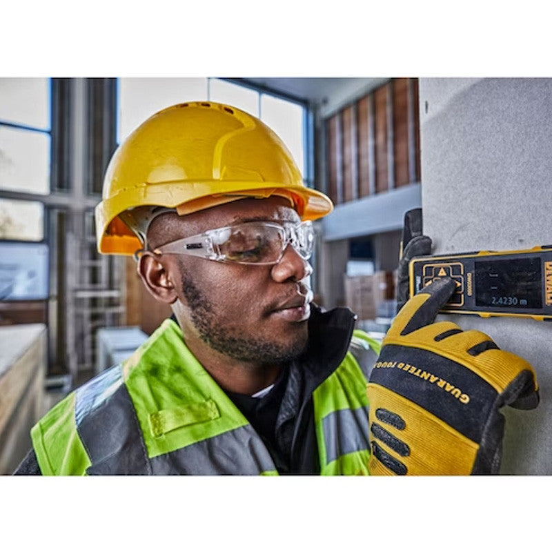 Le télémètre DEWALT DW03050 a une portée jusqu'à 50 mètres et une précision de +/-1.5 mm avec une déviation maximale de 3 mm.