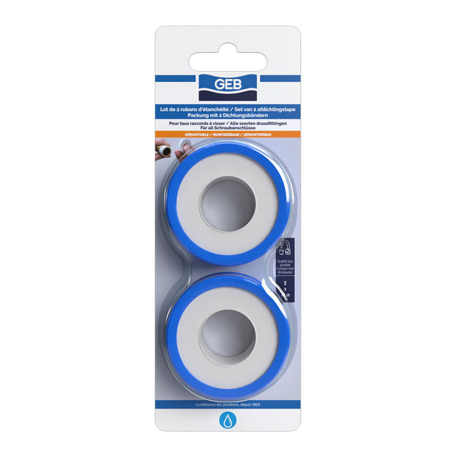 Lot de 2 rubans d'étanchéité en PTFE GEB 12m x 12mm pour l'étanchéité des raccords filetés