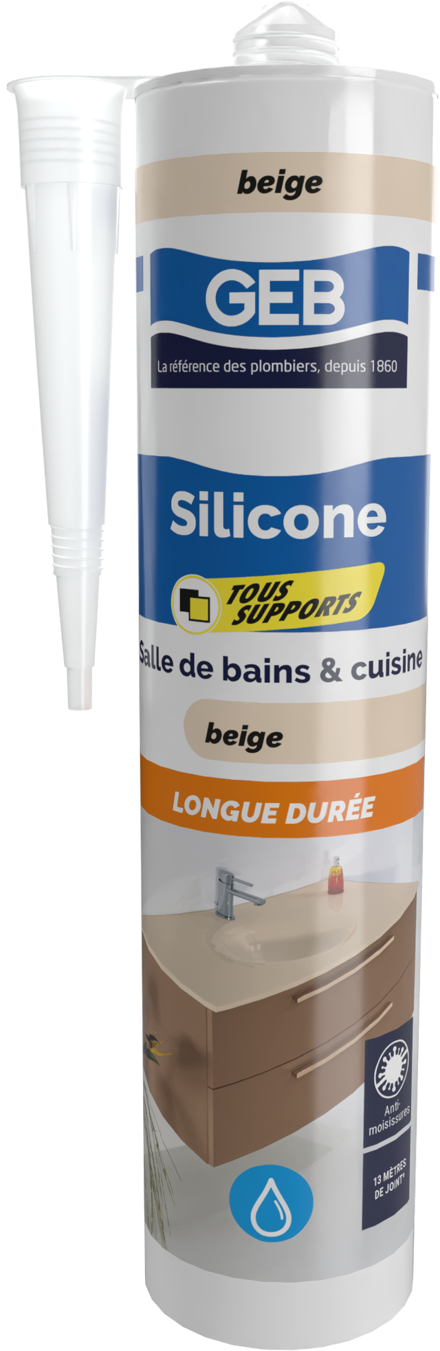 Caractéristiques Mastic silicone tous supports GEB couleur beige pour l'étanchéité sanitaire 280 ml