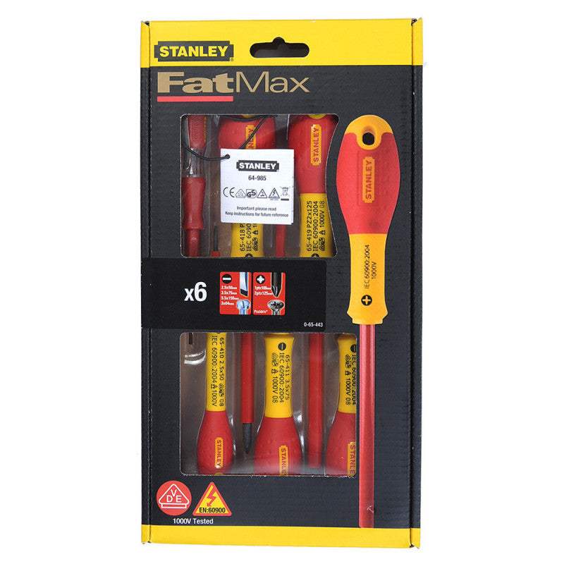 Jeu de 6 tournevis STANLEY FATMAX électricien + mécanicien - pozidriv