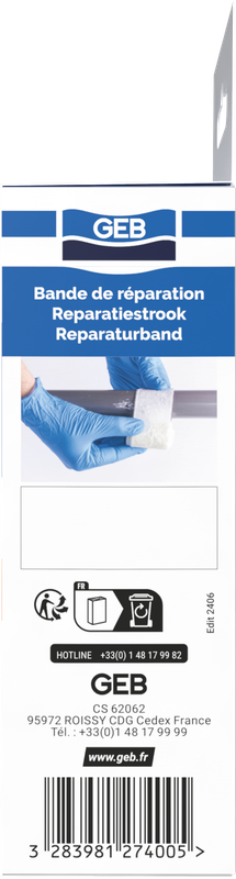 La bande de réparation en fibre de verre GEB permet de réparer rapidement et durablement les fuites, fissures et trous sur tous types de supports rigides.