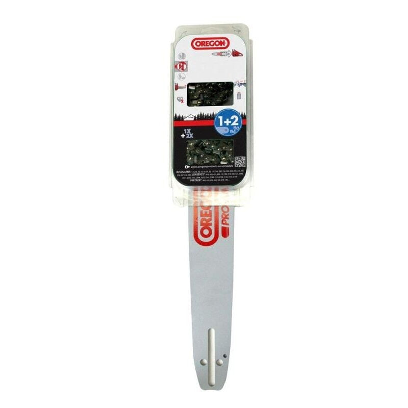 Le kit Oregon comprend un guide robuste et deux chaînes aiguisées prêtes à l’emploi, offrant une solution complète pour l’entretien et la coupe avec une durabilité et une performance optimales.