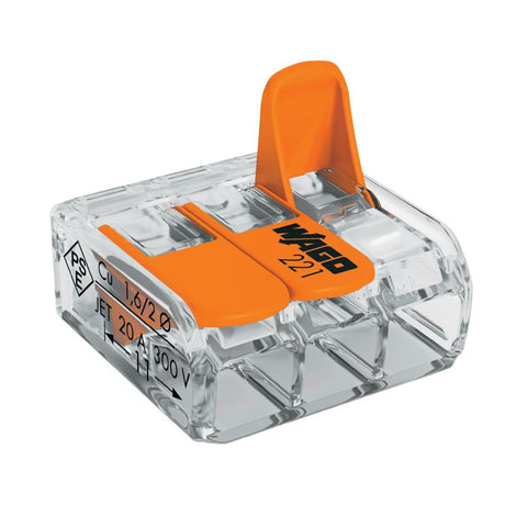 Lot de 50 bornes WAGO 221 Mini 3x4mm² à leviers souple & rigide