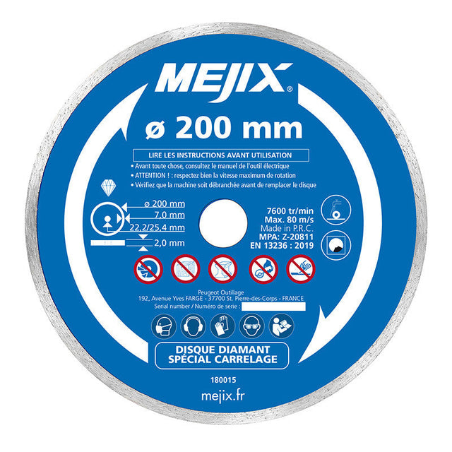 Disque diamant MEJIX 180015 - 200 mm BR 25.4/22.2 mm