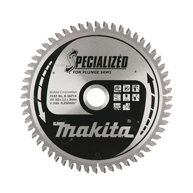 Caractéristiques techniques Lame carbure “Specialized” aluminium MAKITA B-56714 pour scies plongeantes à batterie