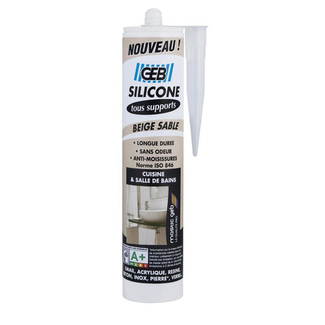 Mastic silicone tous supports GEB couleur beige pour l'étanchéité sanitaire 280 ml