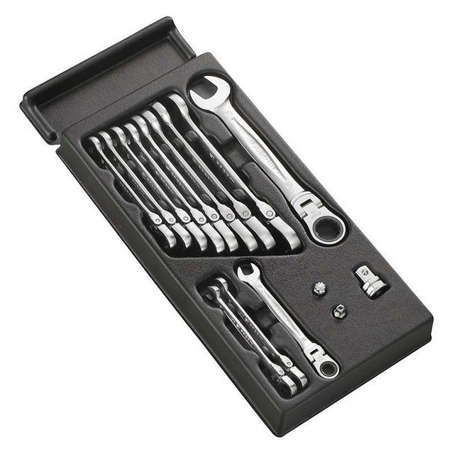Modules de clés mixtes à cliquet articulées métriques en plateau thermoformé et en mousse