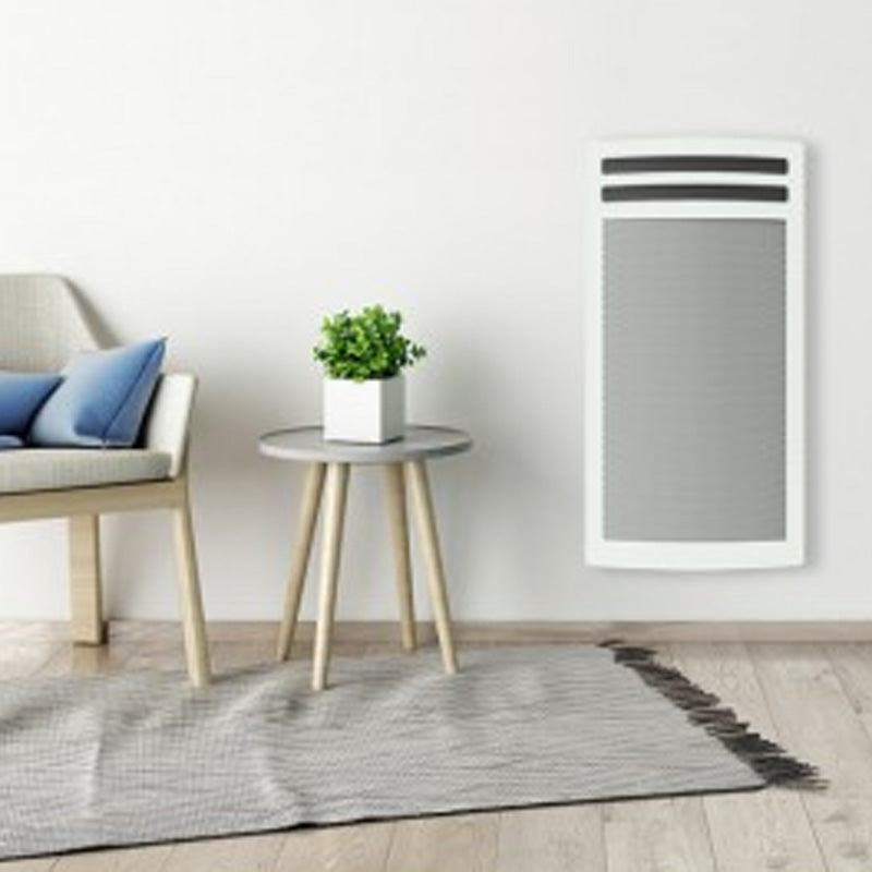 Le panneau chauffant rayonnant Aurea D Vertical NOIROT diffuse une chaleur rayonnante efficace et centrée pour un confort immédiat. Sa régulation précise au 1/10ème de degré, pilotable en 6 ordres multitarif via fil pilote, permet des économies programmées.