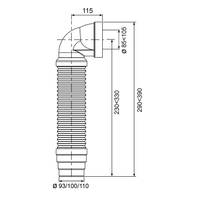 Pipe extensible 90°, Ø 93 / Ø 100 / Ø 110mm