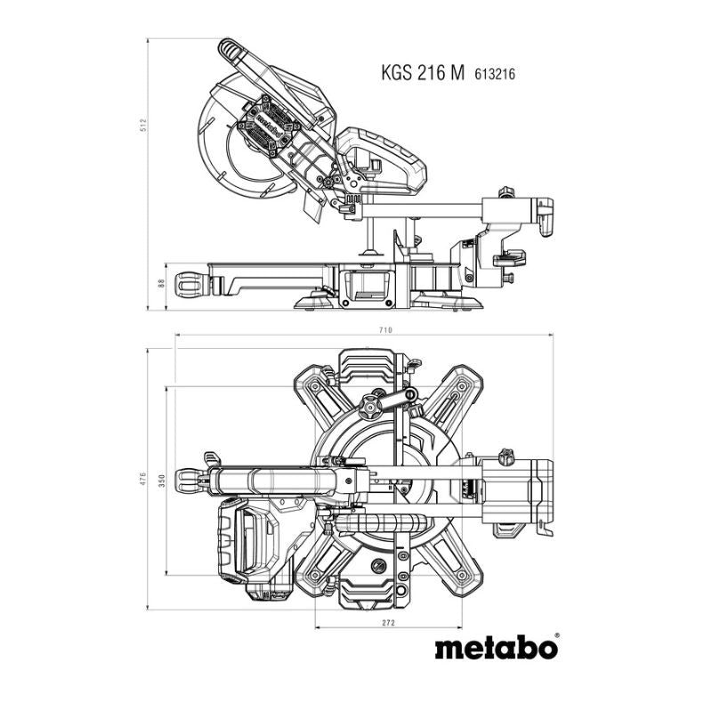Caractéristiques techniques Scie à onglet radiale METABO KGS 216 M - 613216000 - 1200 W - 216 mm 47° (version 2023)