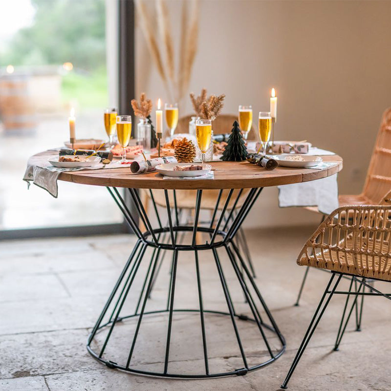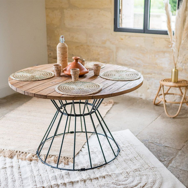 Table robuste en metal et bois idéale à l'extérieur dans votre jardin ou à l'intérieur dans votre salle à manger.