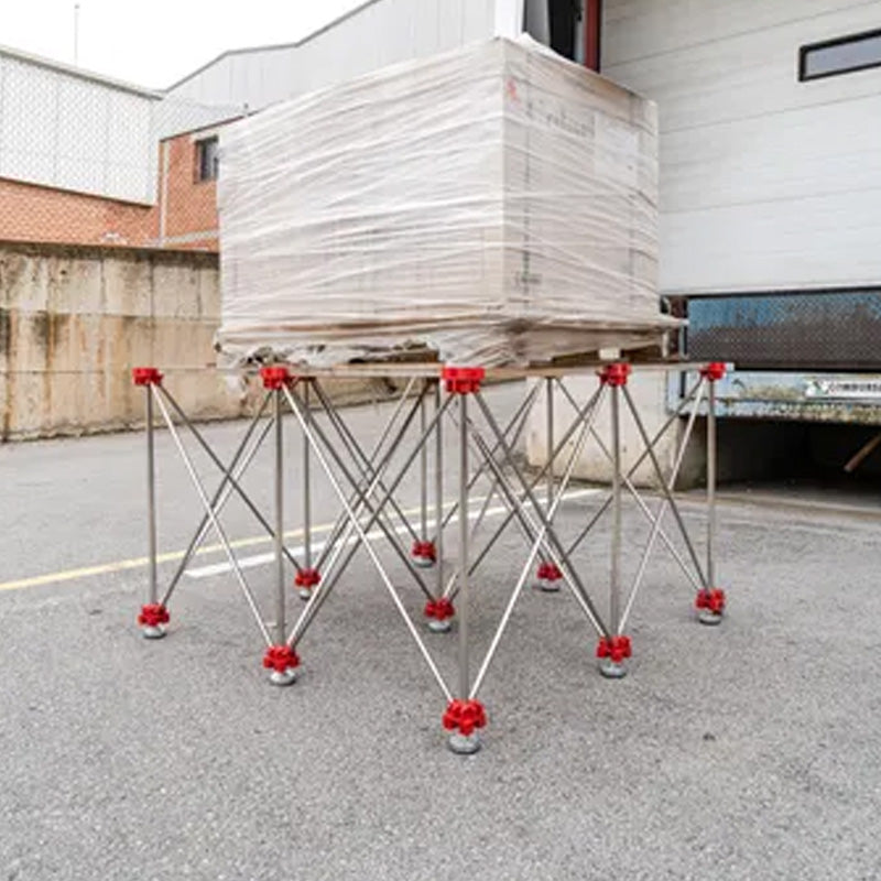 Avec une capacité de charge élevée allant jusqu’à 1 500 kg, elle convient parfaitement aux travaux exigeants. Son montage rapide sans outils et ses bases filetées assurent une installation facile même sur des surfaces irrégulières. Les roues intégrées et le sac de transport renforcent sa mobilité et son confort d’utilisation.