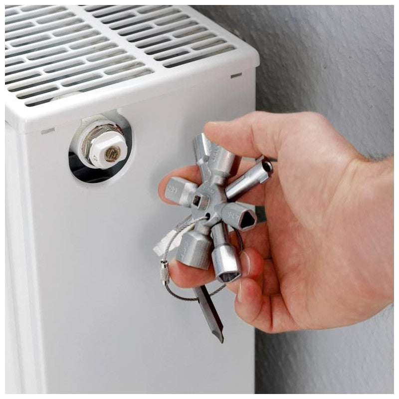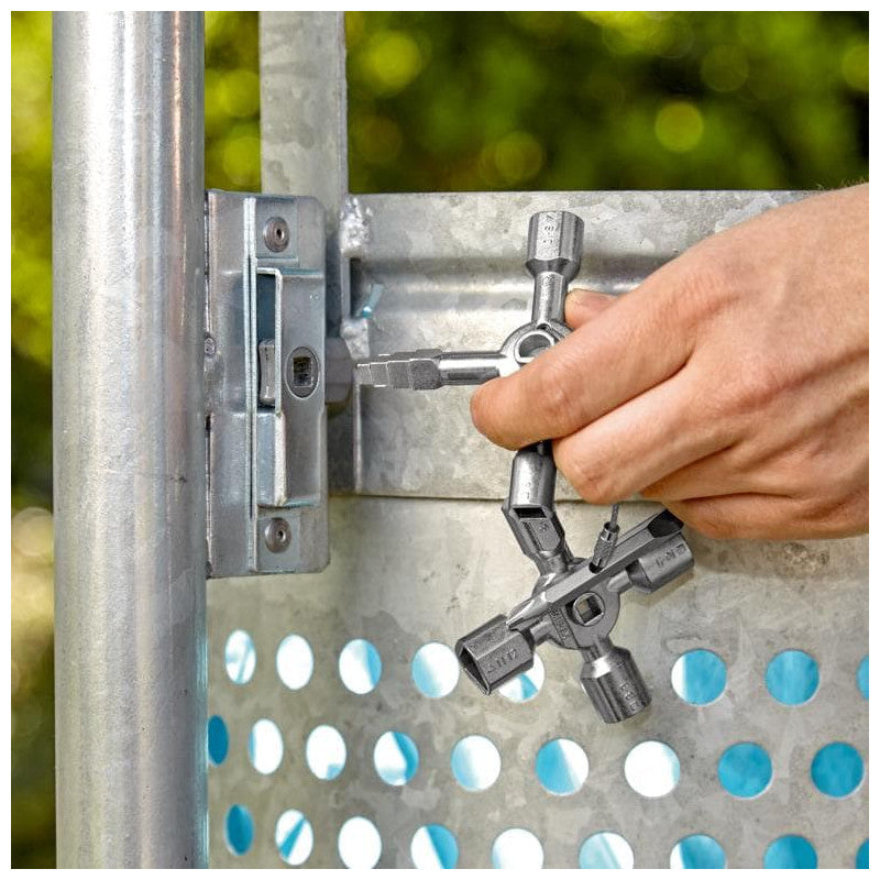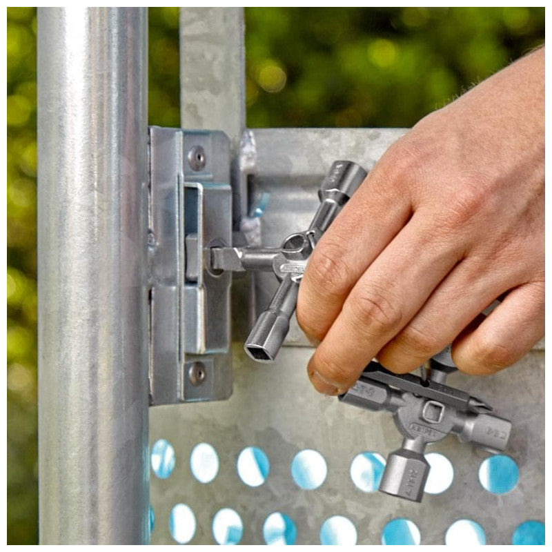 Clé multifonctionnelle pour l'actionnement des fermetures depuis les zones techniques des bâtiments (chauffage et sanitaire, technique de climatisation et de ventilation, électrotechnique), alimentation en gaz et en eau et systèmes d'arrêt