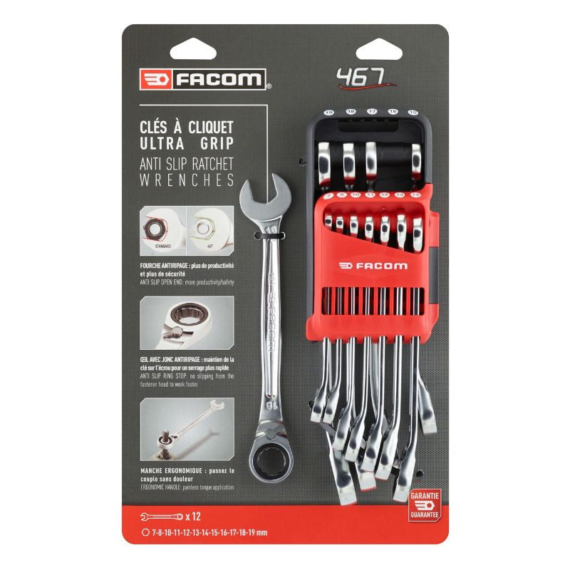 Jeu de 12 clés mixtes à cliquet FACOM 467B.JP12PB - étui pocket - 7 à 19mm