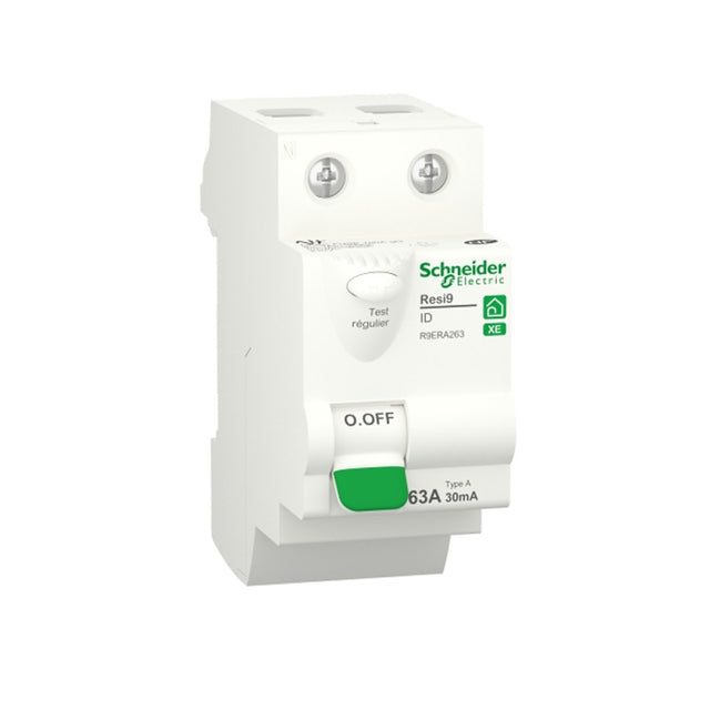 Interrupteur différentiel SCHNEIDER R9ERA263 63A type A 30mA 1P+N embrochable Resi9 XE
