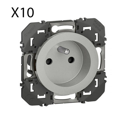 Lot de 10 Prises de courant 2P+T à puits LEGRAND dooxie 16A finition alu
