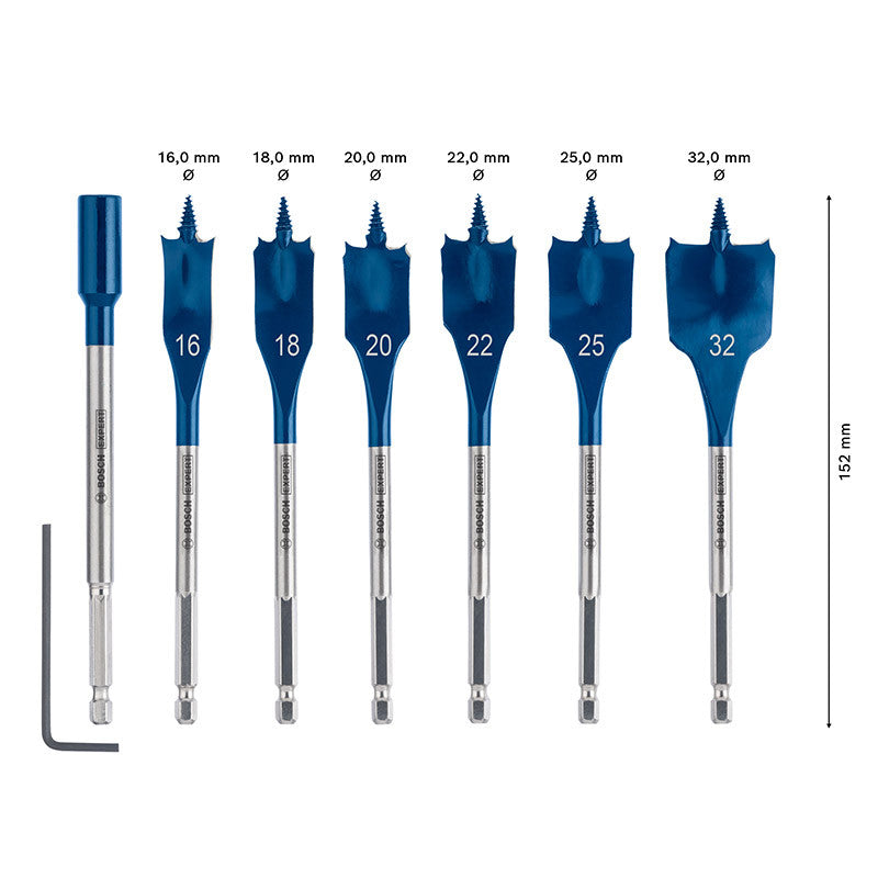 Caractéristiques techniques Mèche plate BOSCH 2608900334 Expert SelfCut Speed 16 18 20 22 25 32 mm 7 pces
