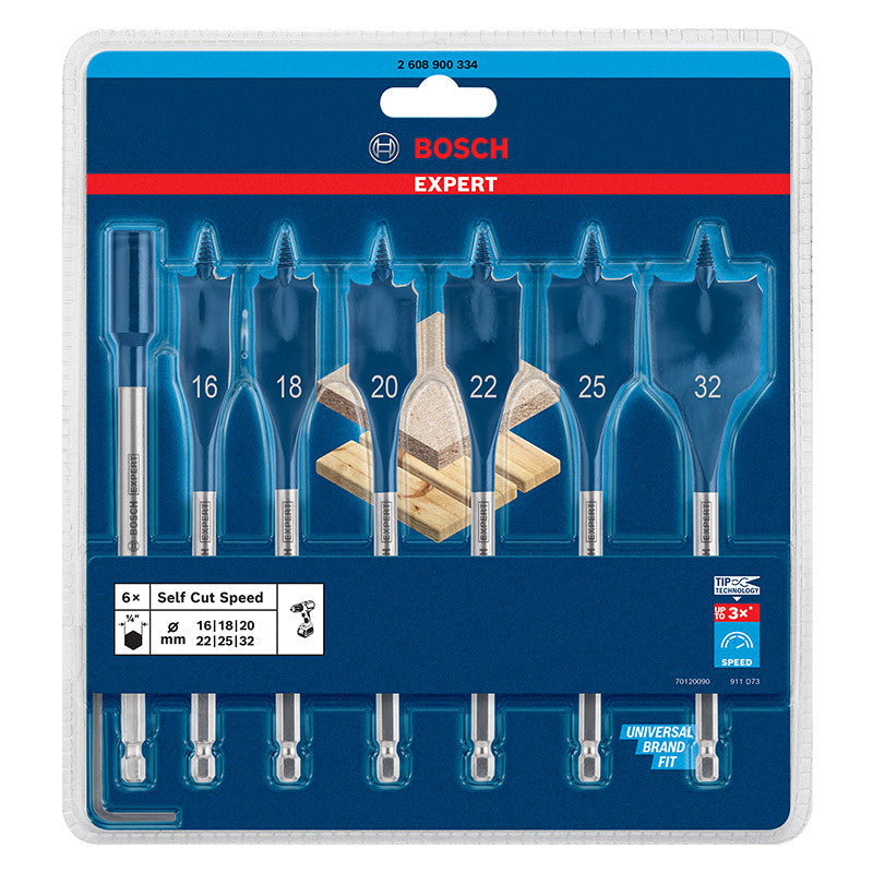 Mèche plate BOSCH 2608900334 Expert SelfCut Speed 16 18 20 22 25 32 mm 7 pces