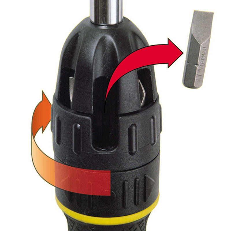 Publié le 19/05/2025 à 09:05. (Date de commande : 06/05/2025)4Bonne prise en main avec son manche trois faces, semble rouste mais pas encore essayé. Emplacements à accès rapide et emplacements sécurisés pour stocker les embouts de tournevis.